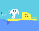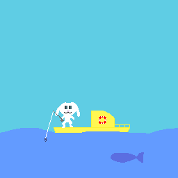 Idea: to think of something based around a boat. Rabbit ‘catches’ a fish, and falls overboard when the line snaps